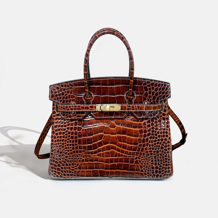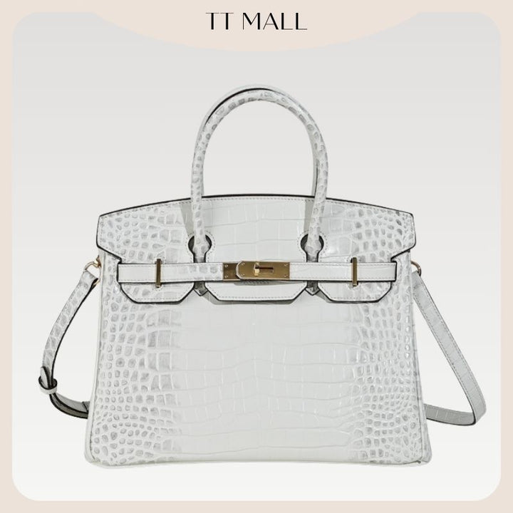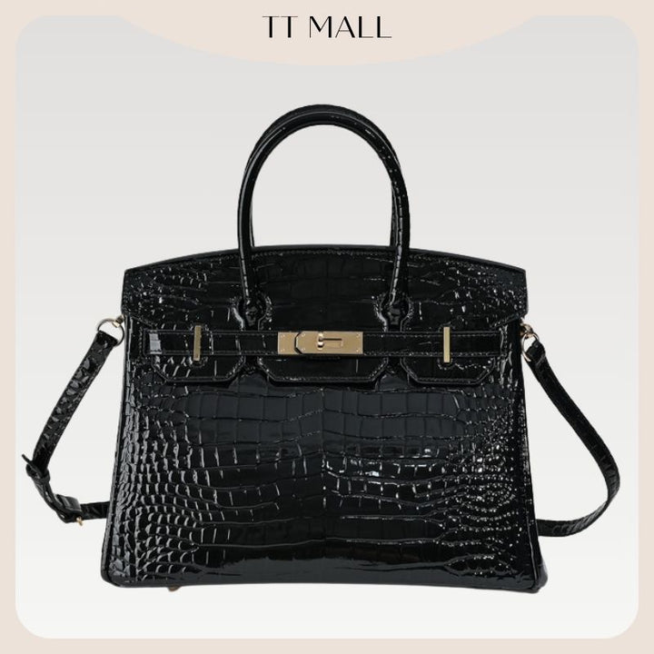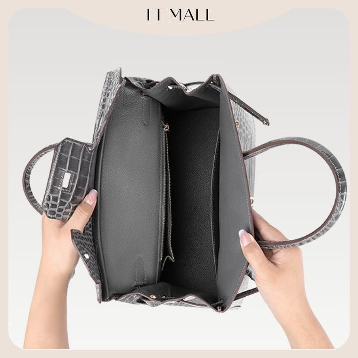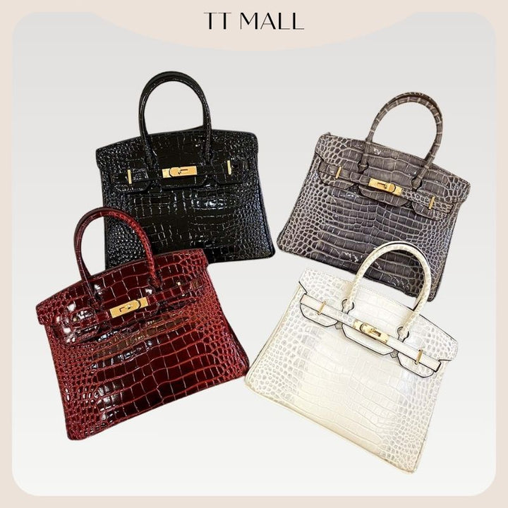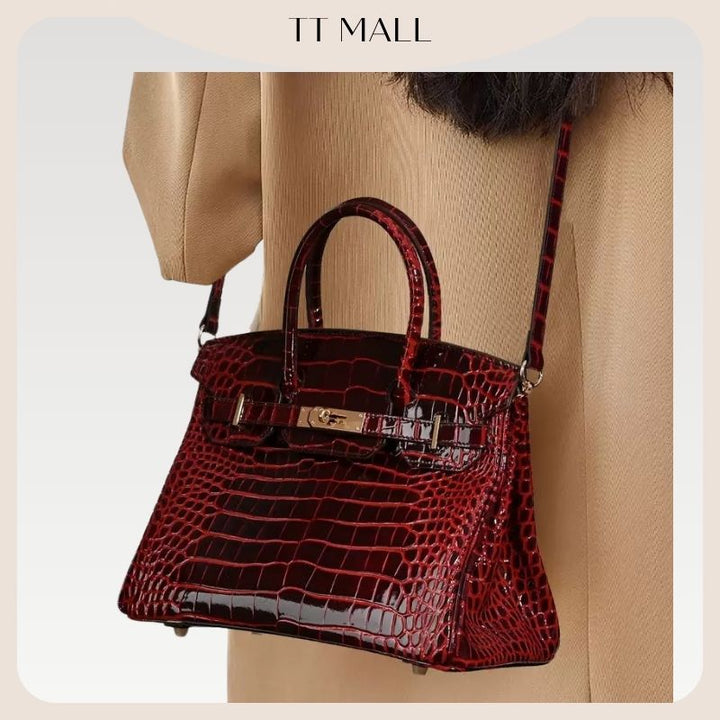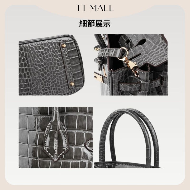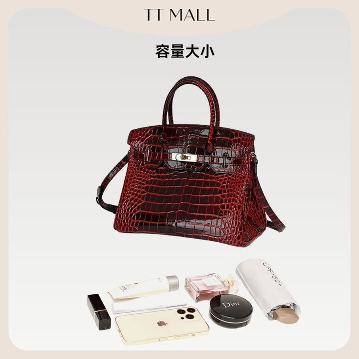 2025新款女包大容量歐美時尚鱷魚紋鉑金包斜背包真皮爆款手提包