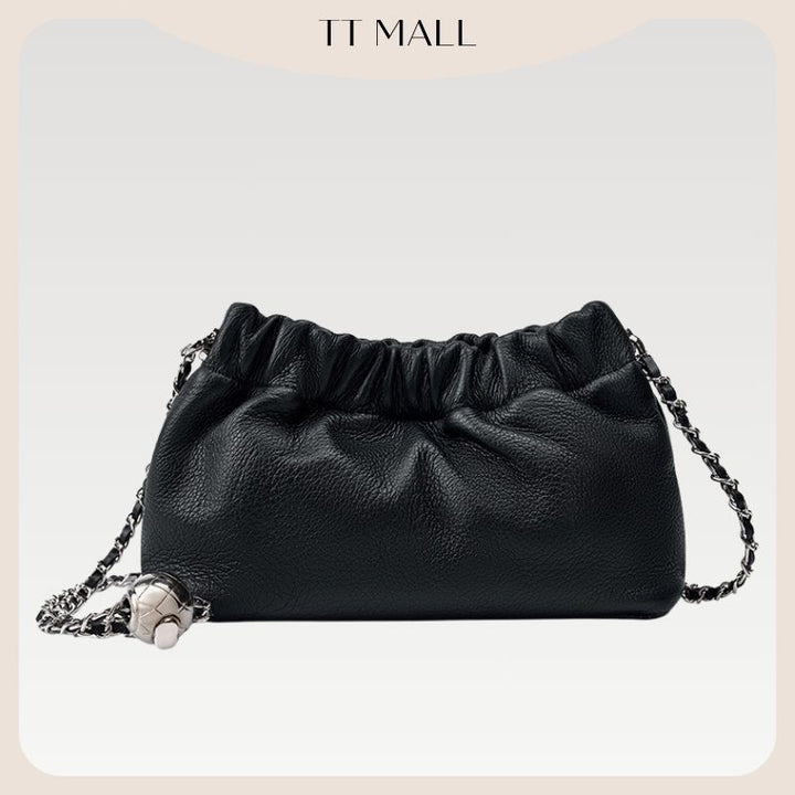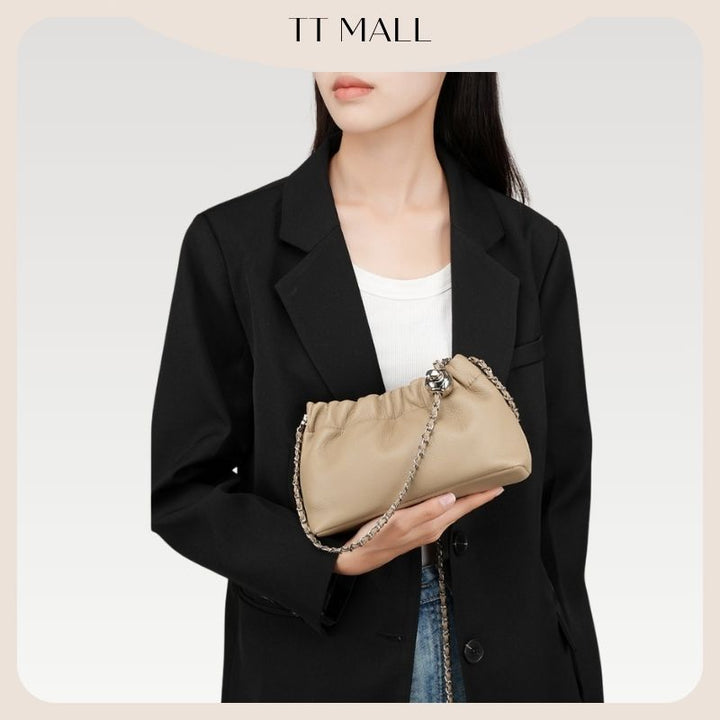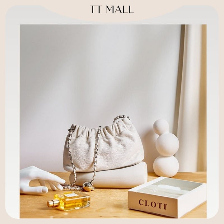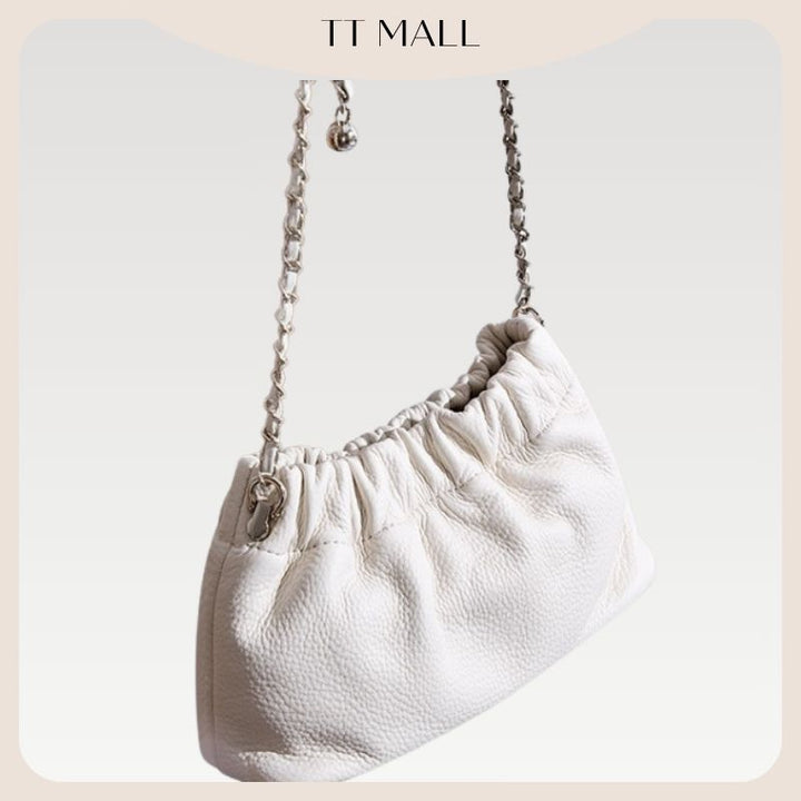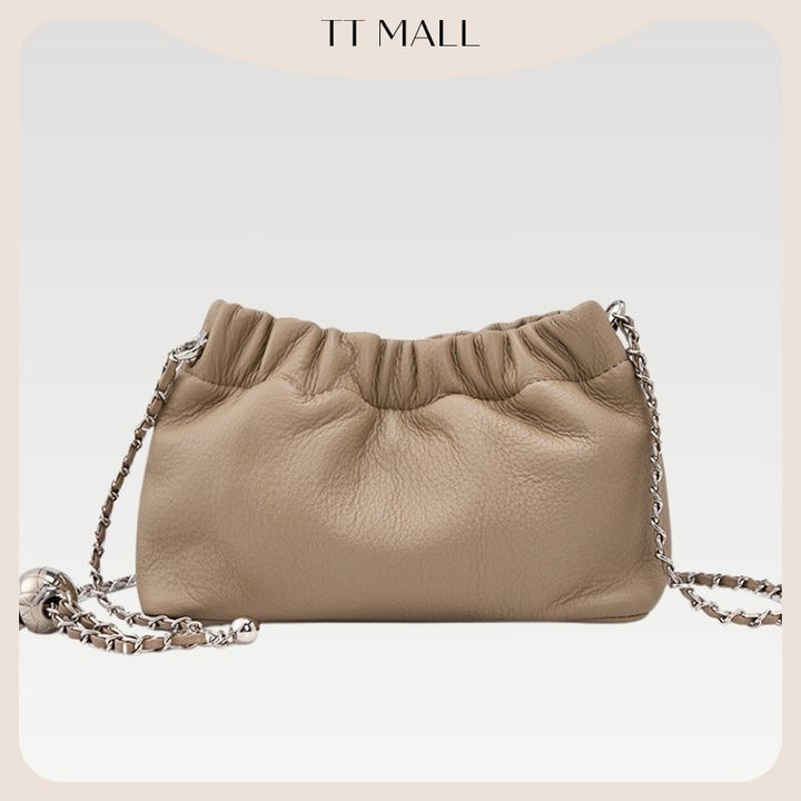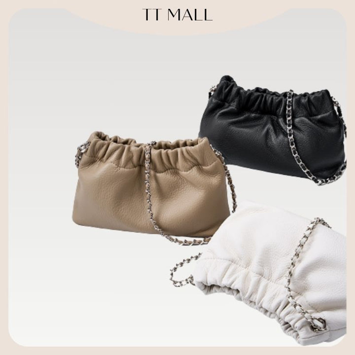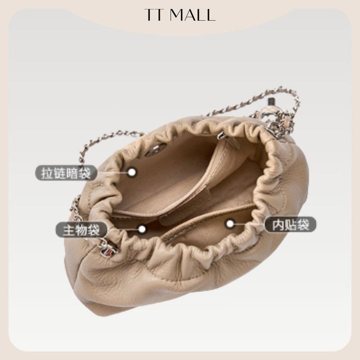 2025新款正韓超軟牛皮多way雲朵包可調節氣質款包包百搭鏈條單肩斜背包褶皺雲朵包